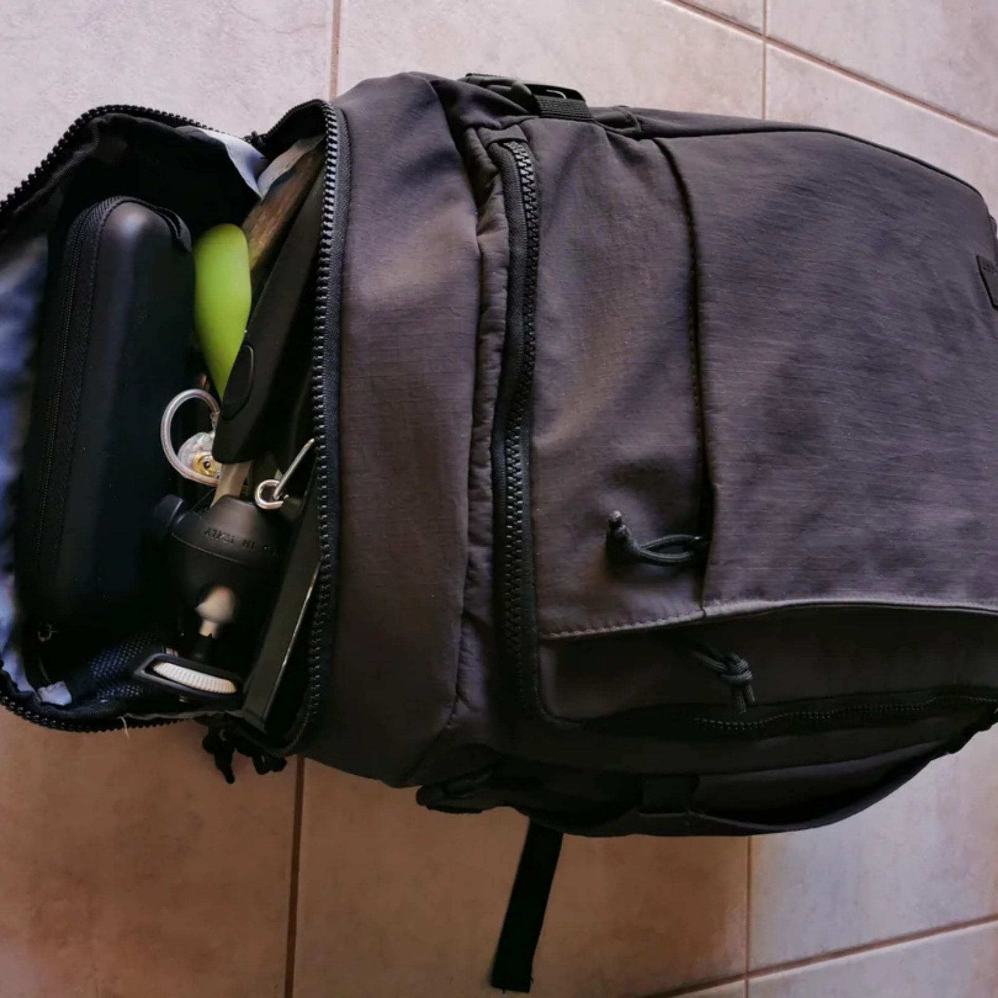 « Ultra-léger (~0,9 kg) et extensible : ce sac est un compagnon malin pour le voyage – ouverture à 180°, une tonne de poches, et ultra-bien organisé. Pour le prix, excellent rapport qualité-fonctionnalité. » — (test Pack Hacker)